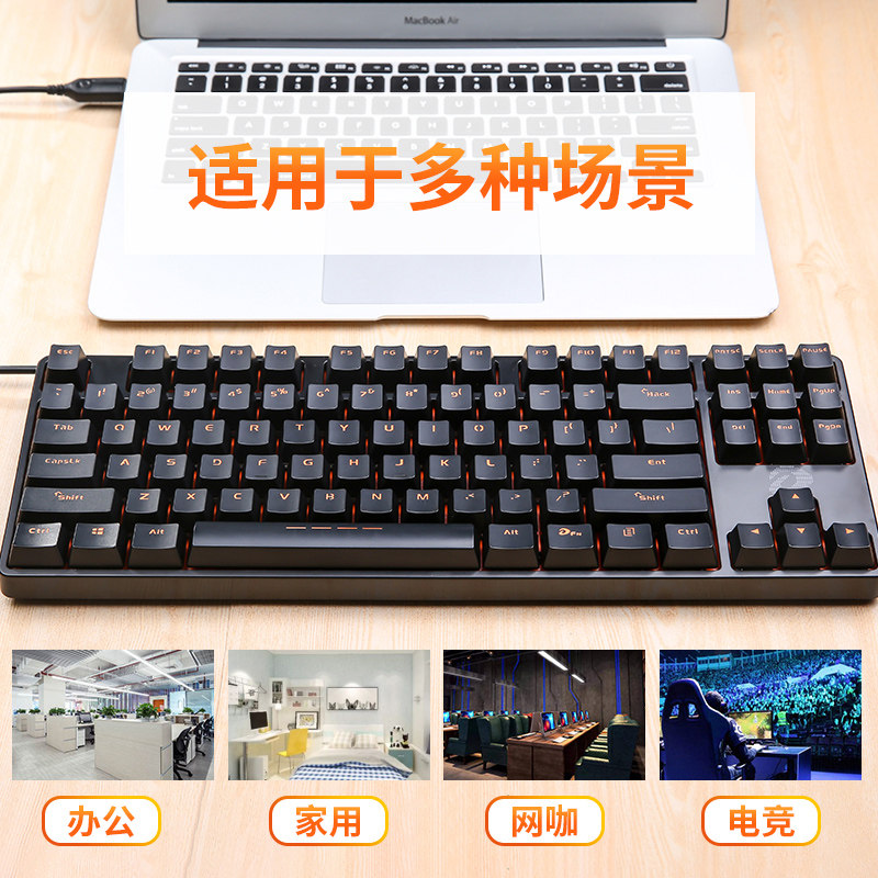 达尔优DK100学生机械键盘有线黑轴青轴红轴茶轴有线87键游戏办公