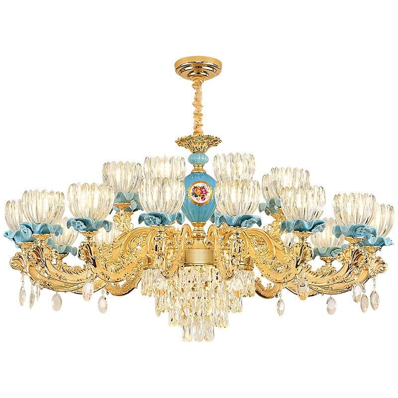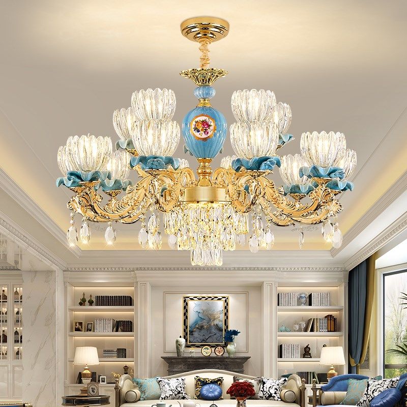 欧式吊灯客厅灯奢华大气法式锌合金水晶灯饰轻奢卧室餐厅陶瓷灯具