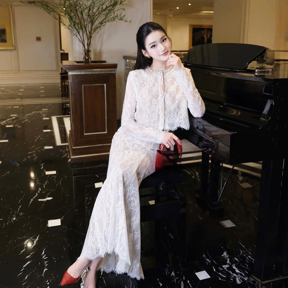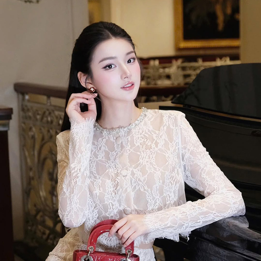 白色蕾丝小香风性感气质显瘦上衣高腰鱼尾半身裙套装两件套女夏