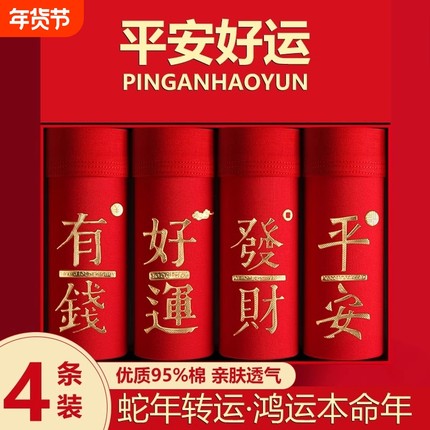 红内裤男马年本命年属马大红色平角裤短裤大码四角裤礼盒好运棉质