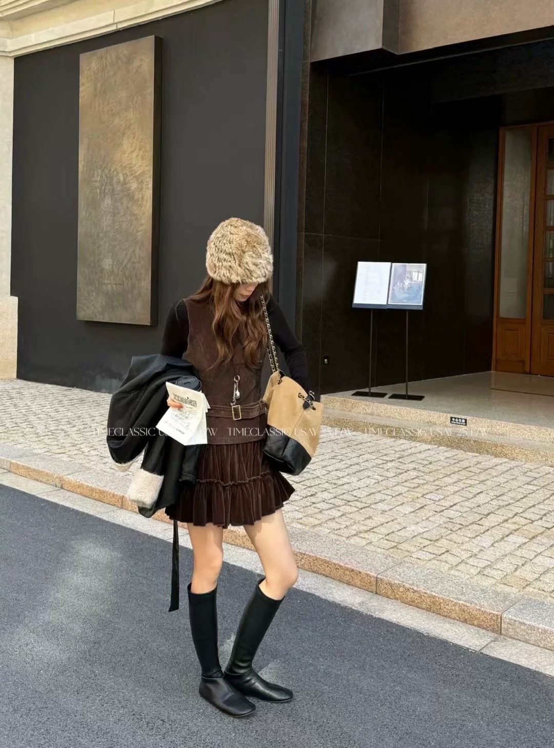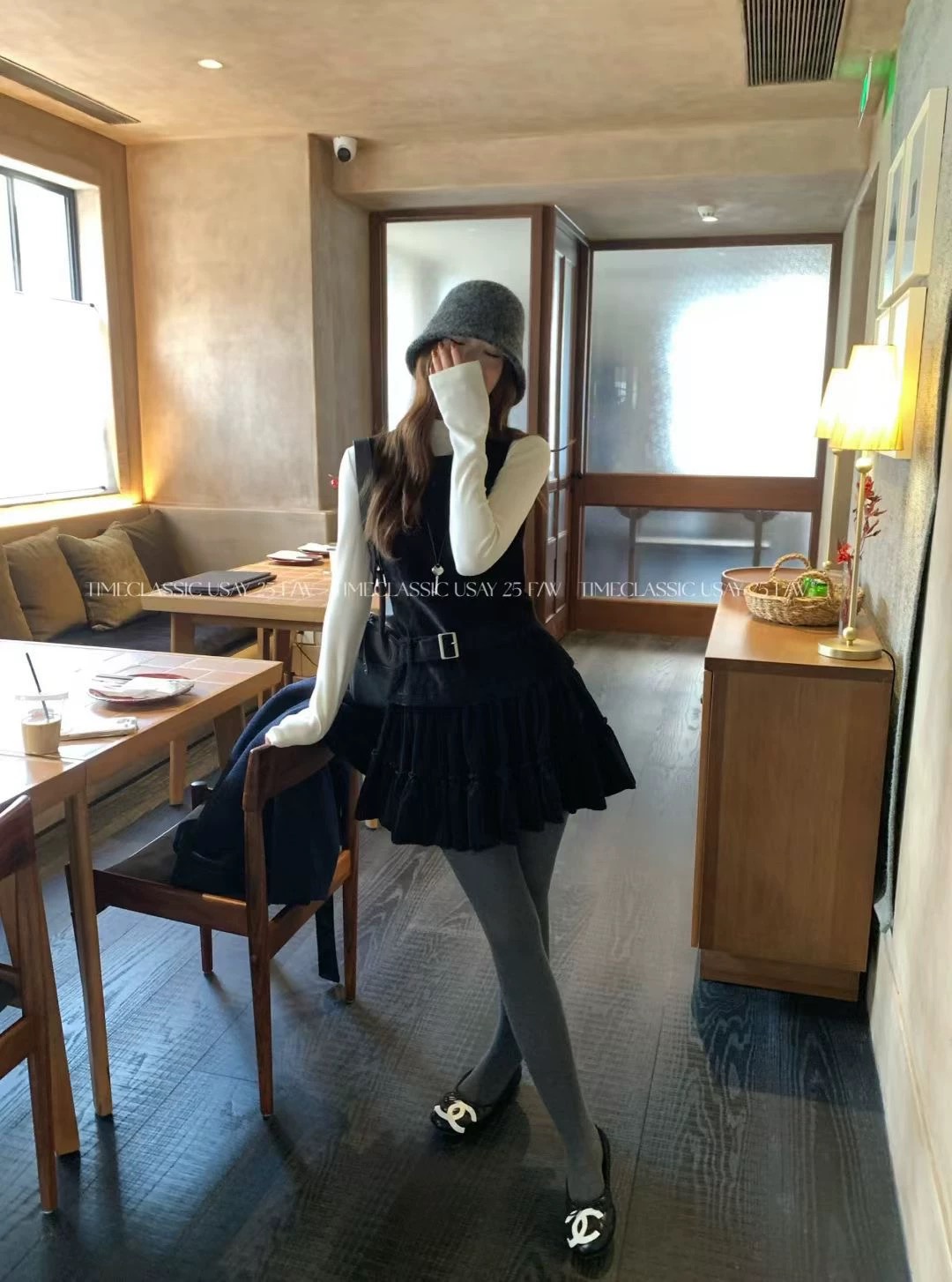 韩系2025秋冬新款设计感丝绒背心裙连衣裙女显瘦百搭蛋糕连衣裙