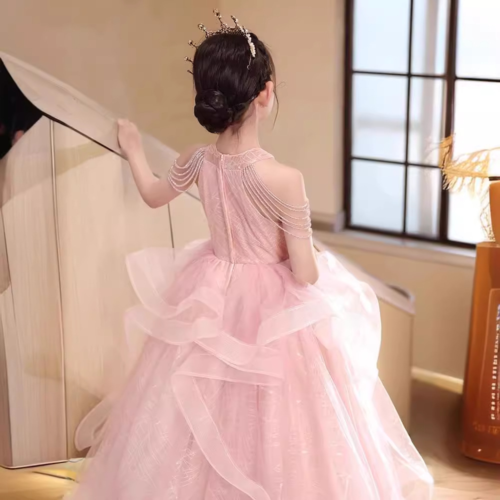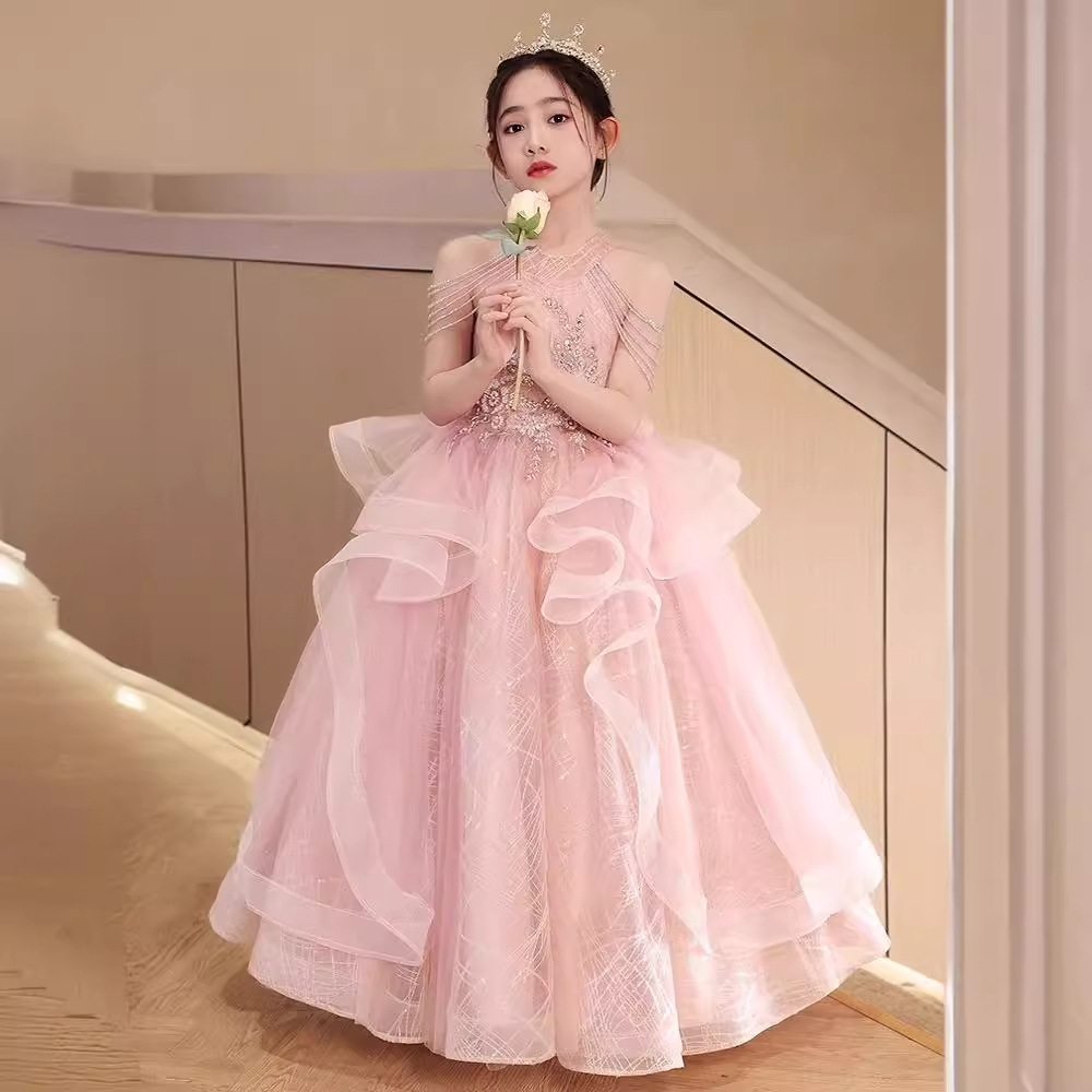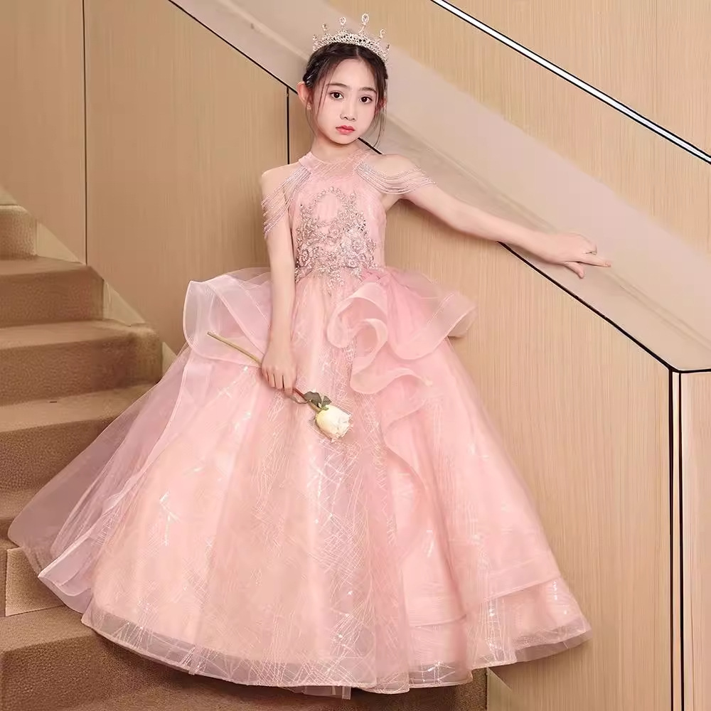 黑木马高定 粉色儿童礼服裙女童洋气蓬蓬纱公主裙主持演奏演出服