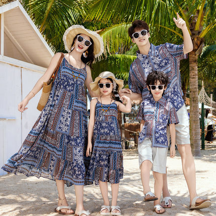 海边沙滩度假三亚亲子装2025新款夏季一家三口母女旅游背心连衣裙