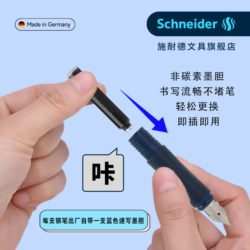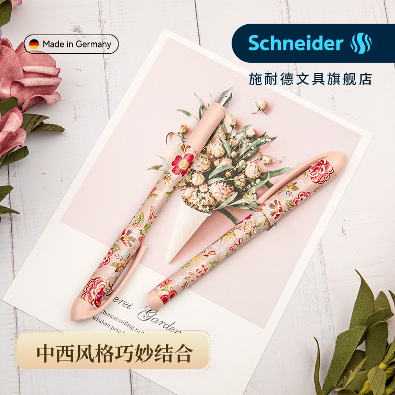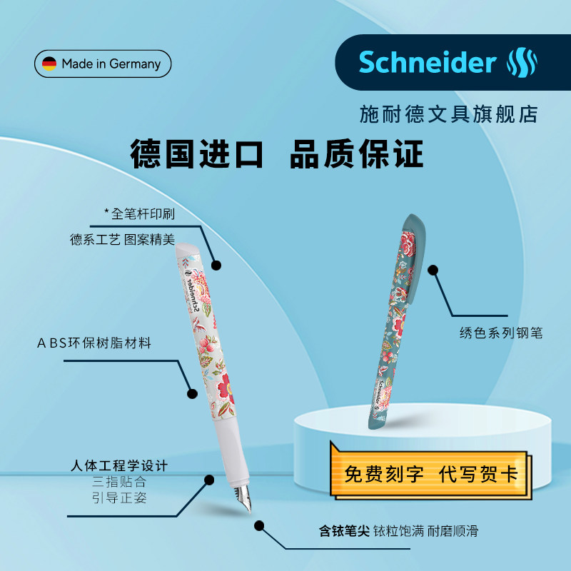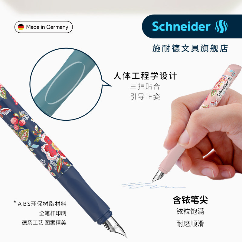 施耐德钢笔德国进口绣色学生专用小学生三年级女生练字F尖0.5二升三可换墨囊可擦男孩四年级中国风生日送礼物