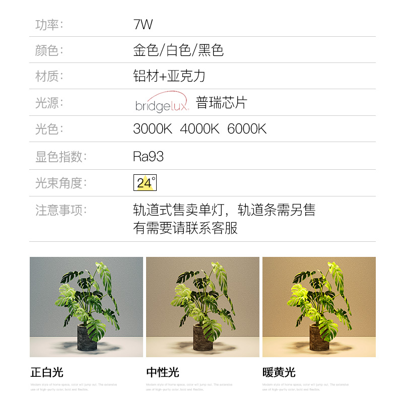 led明装射灯家用客厅电视机背景墙可调角度单个吸顶式7瓦小轨道灯