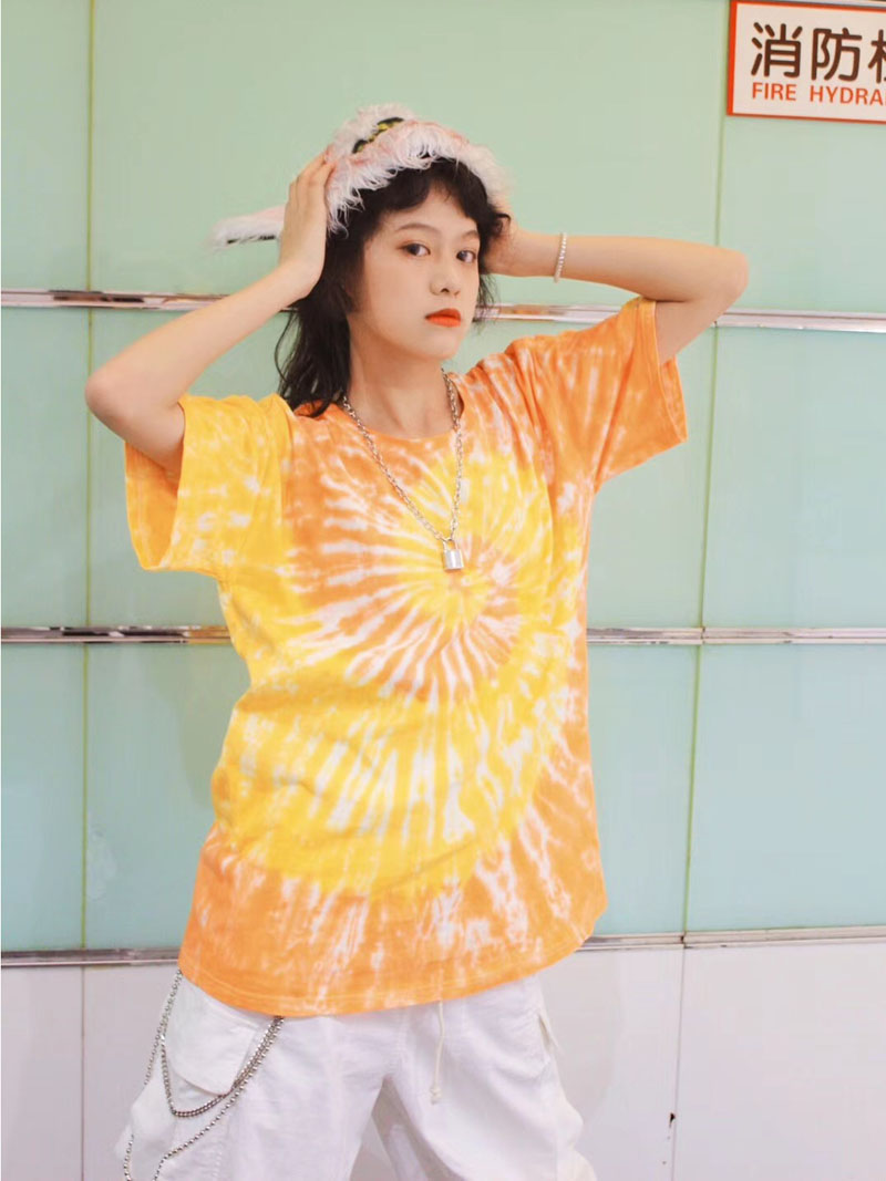 原创螺旋手工扎染潮t恤棉彩虹tee