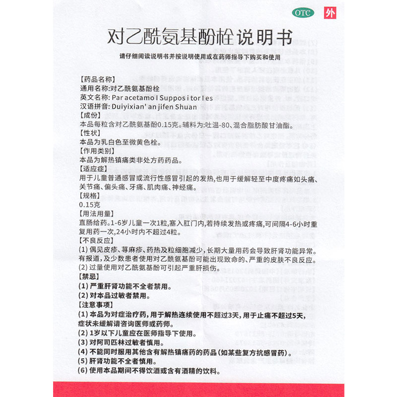 东信对乙酰氨基酚退热栓儿童发烧退烧小儿婴幼儿婴儿退烧药塞屁股