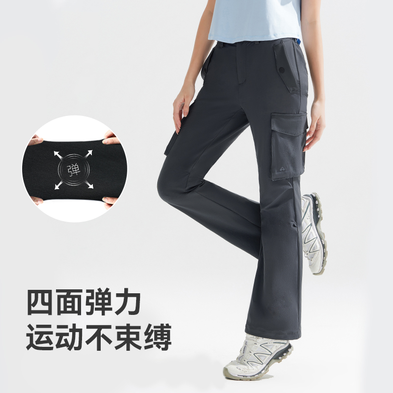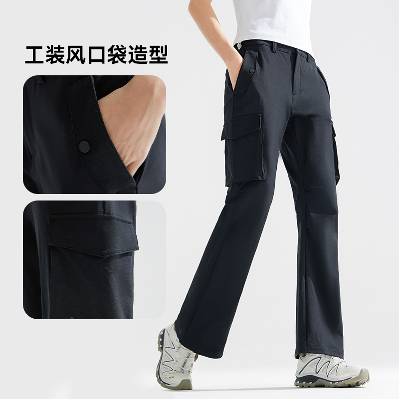 拓路者女伞兵裤口袋褶皱微喇工装裤2025春秋速干弹力喇叭裤徒步裤
