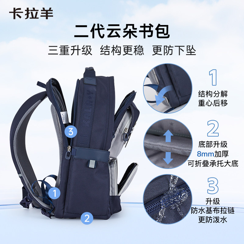 卡拉羊初高中生56年级云朵书包女大容量减负护脊双肩包男轻量背包