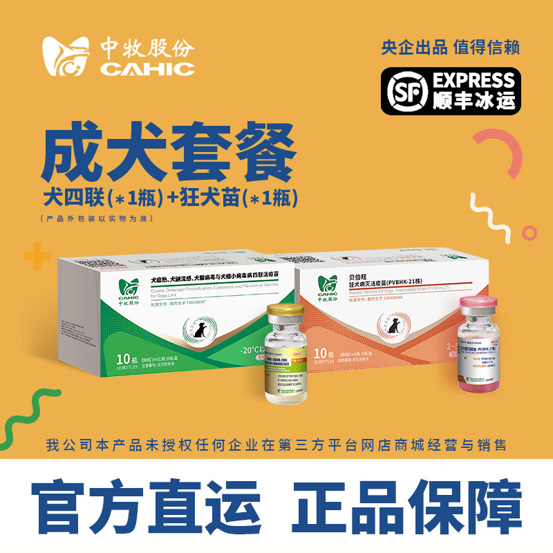 中牧股份CAHIC狗狗狂犬疫苗犬四联幼犬成犬免疫套装预防自打官方
