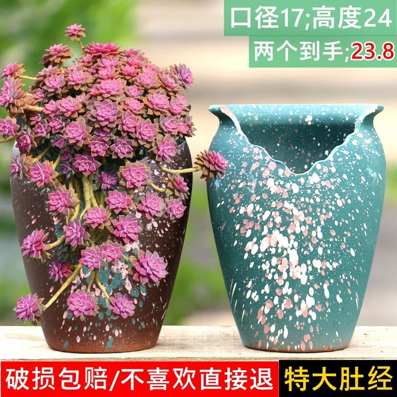 高切口造型缺口悬崖多肉花盆粗陶陶瓷植物特大陶罐小老桩