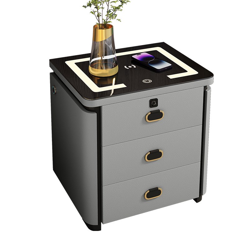 智能床头柜简约现代多功能带锁无线充电实木网红款U轻奢三抽床边