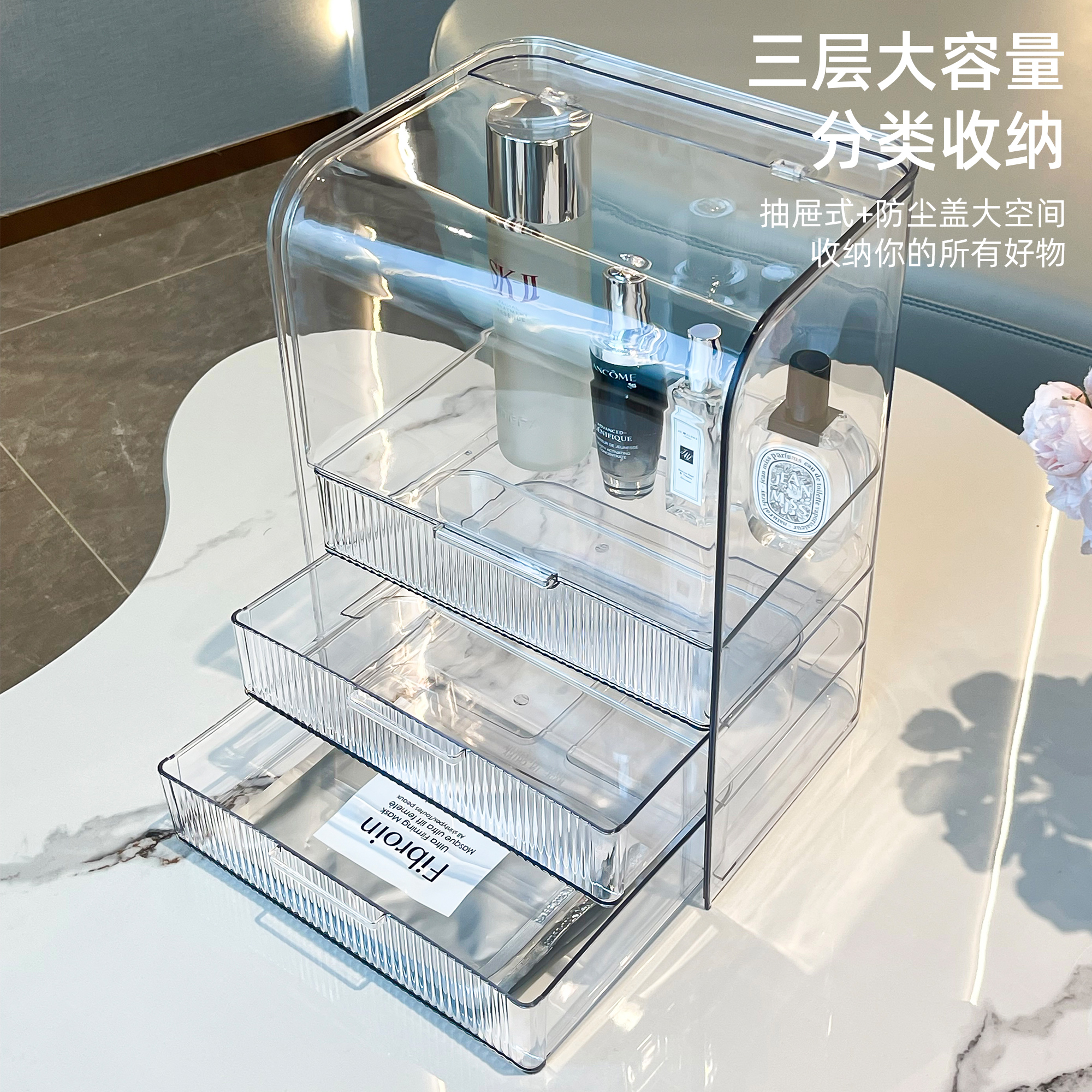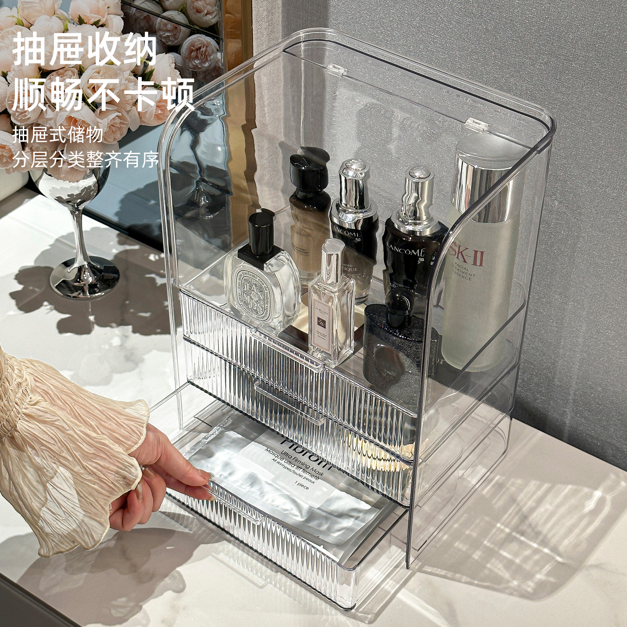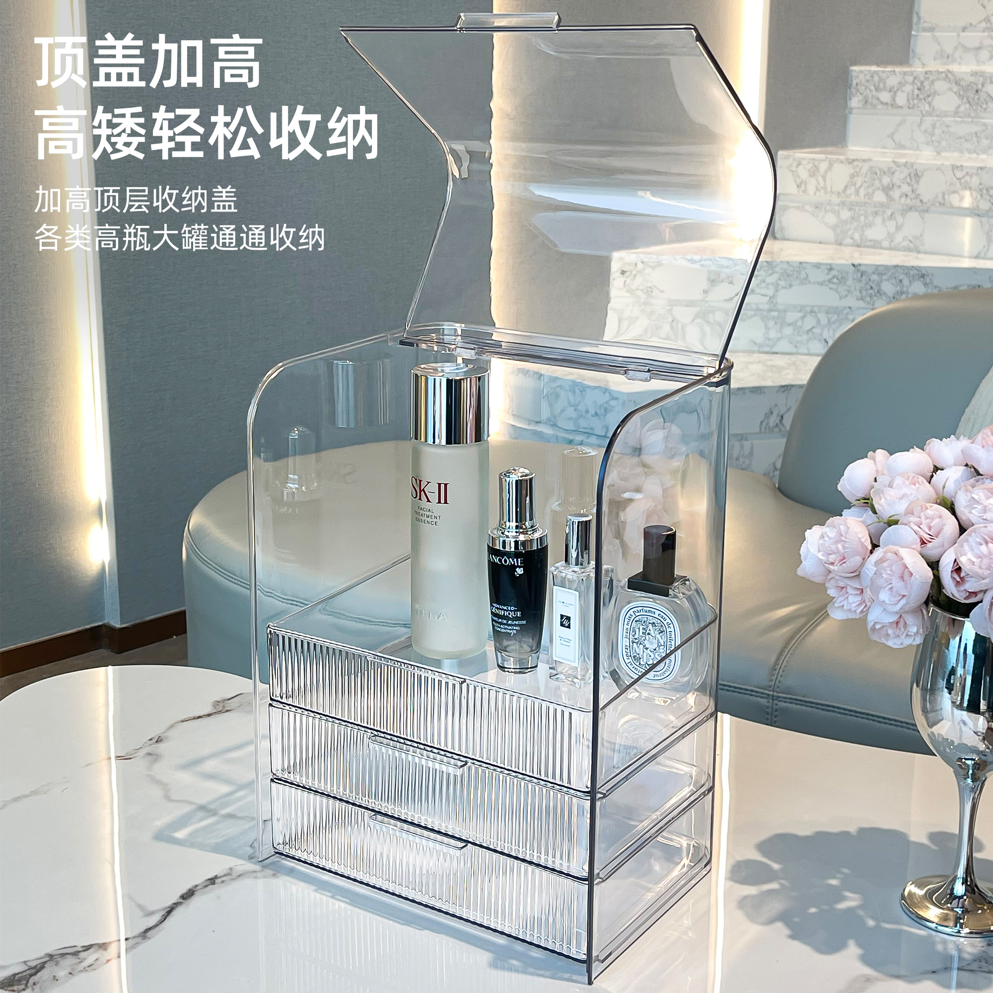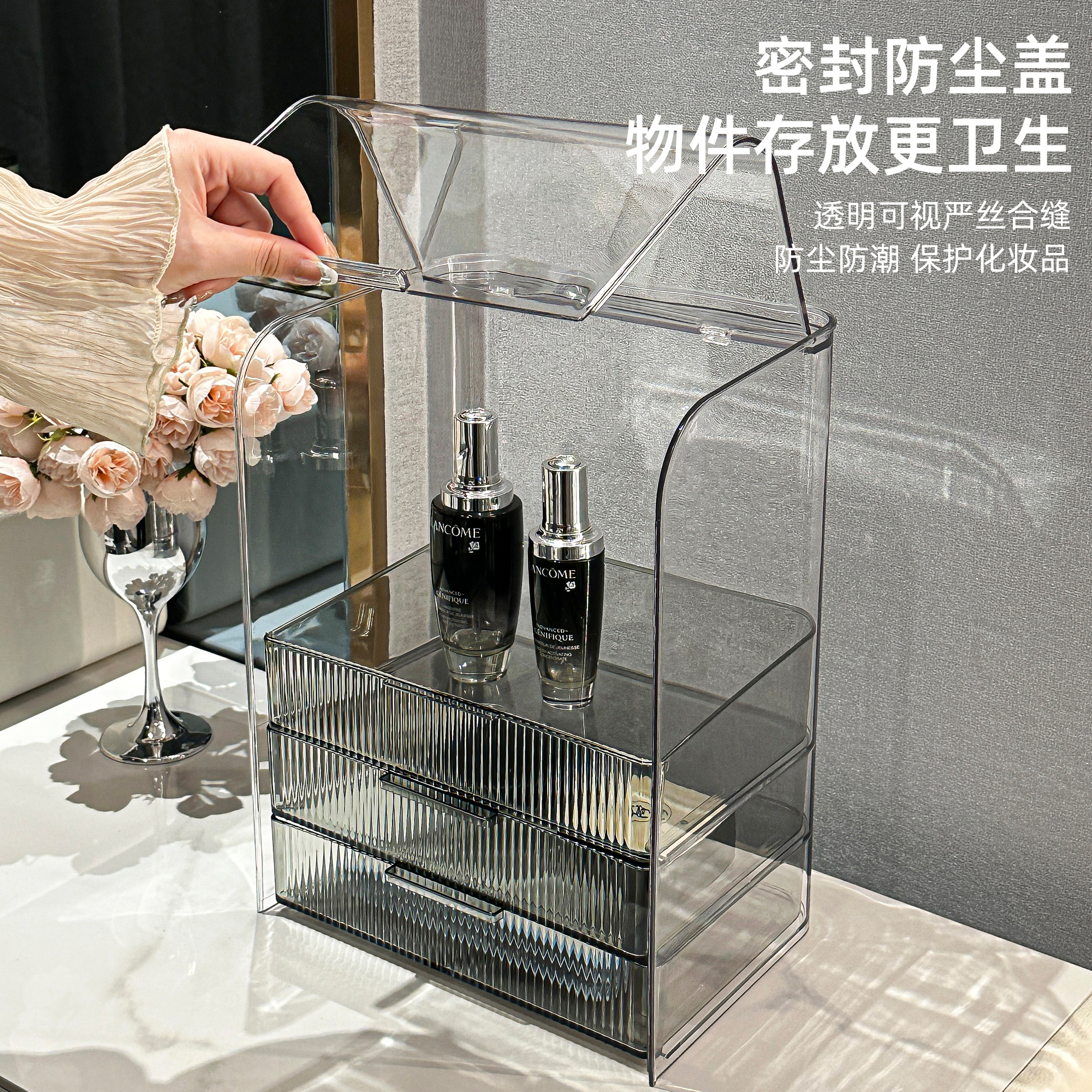 透明化妆品收纳盒防尘桌面梳妆台护肤品口红亚克力置物架子高级感