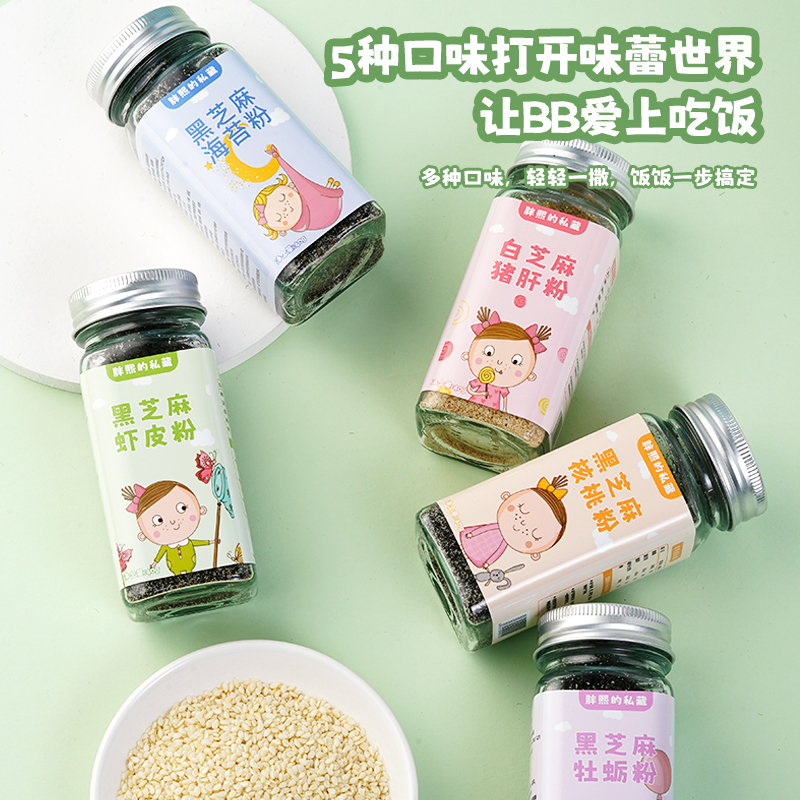 黑芝麻核桃粉猪肝粉海苔宝宝吃饭调料调味粉送婴幼儿辅食表无添加