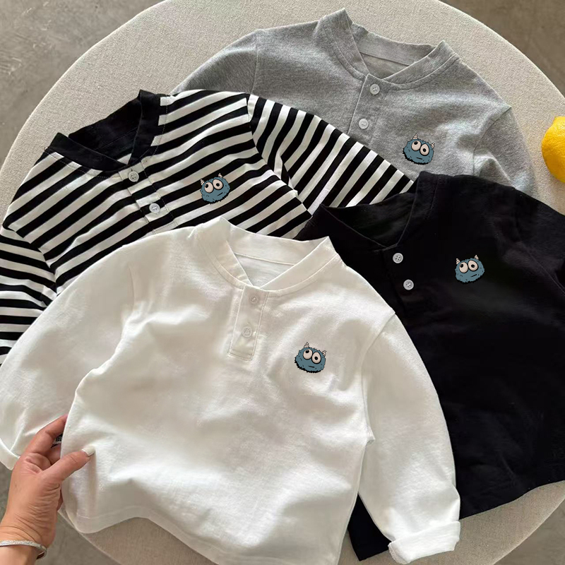 男童女童新款休闲打底亨利领上衣长袖T恤春秋纯棉透气长袖T恤衫潮