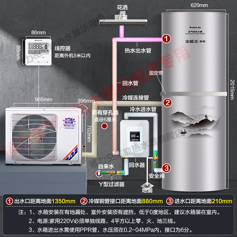 Gree/格力空气能热水器家用400升大容量一级能效商用空气源电热泵