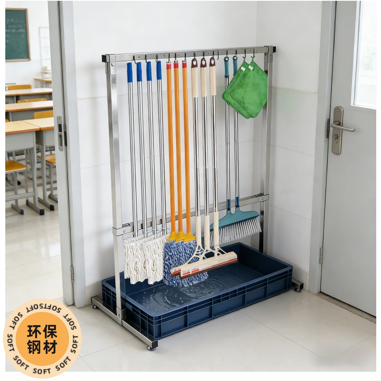 沛晴不锈钢拖把架落地式免打孔可移动扫把挂架清洁工具收纳置物架