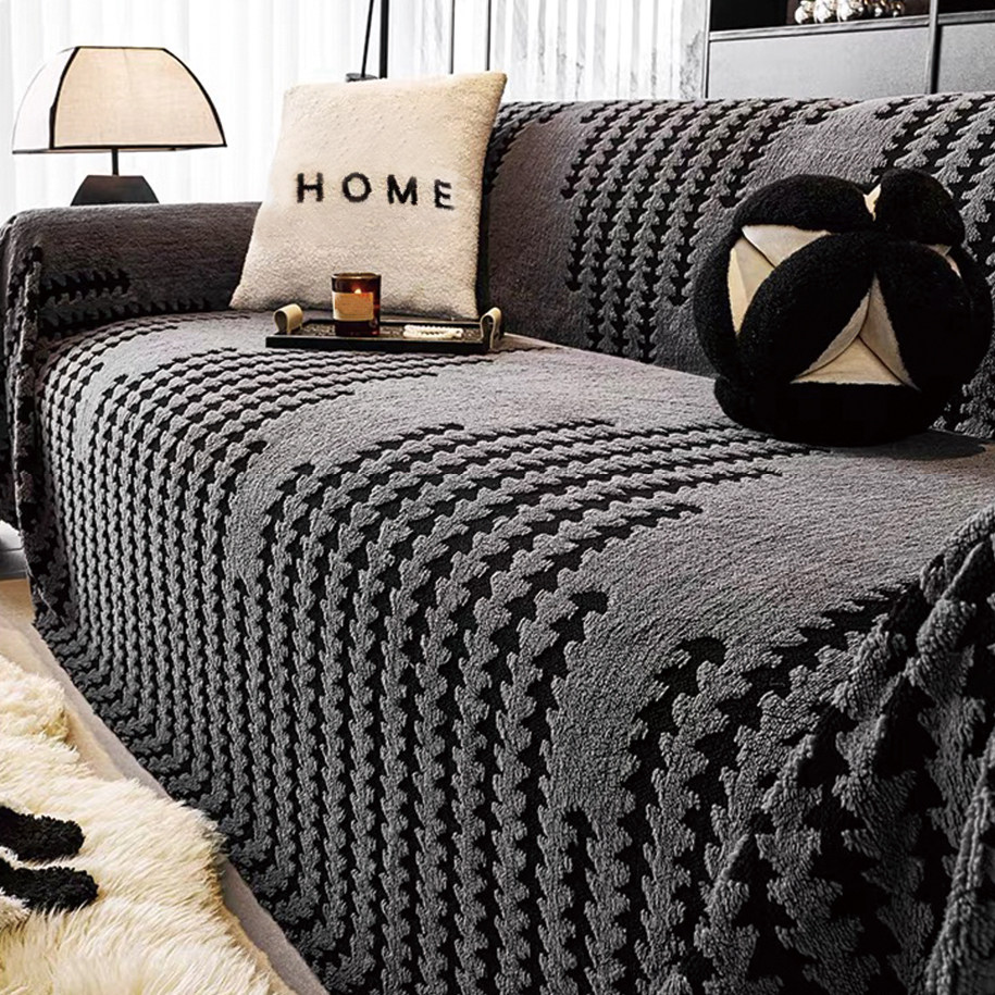 万能全盖沙发巾四季款防滑防猫抓高级感提花柔软毛绒套罩沙发盖布