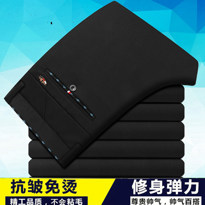 春夏季男士休闲裤免烫直筒西装裤薄款高弹力商务男裤修身长裤子男