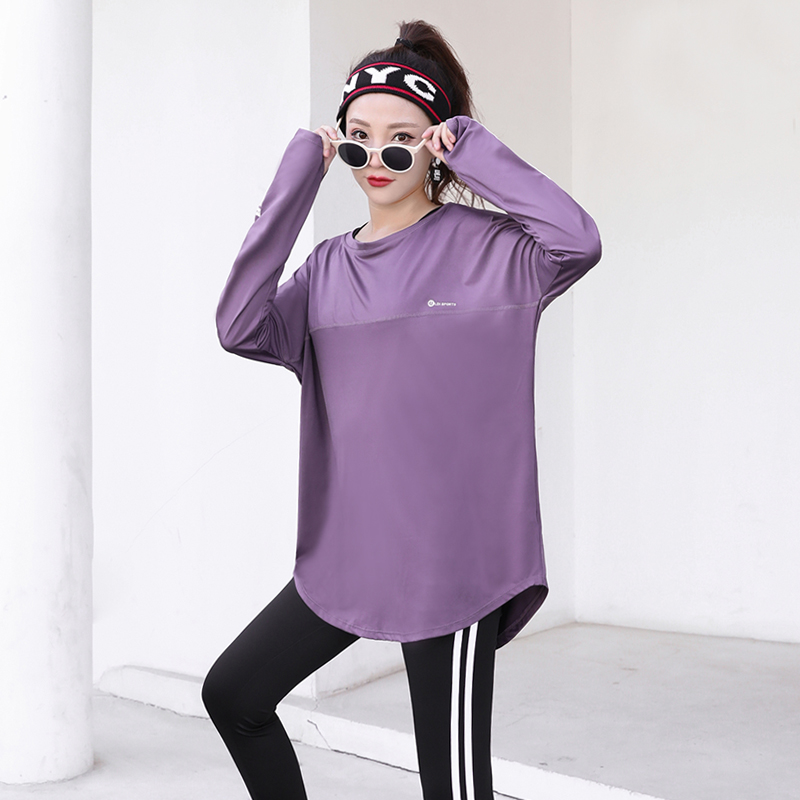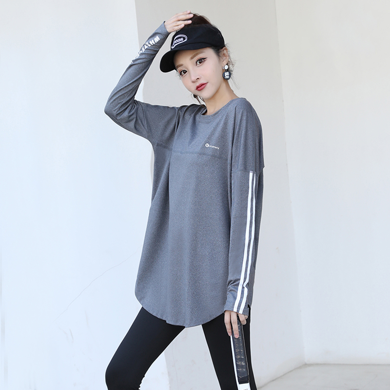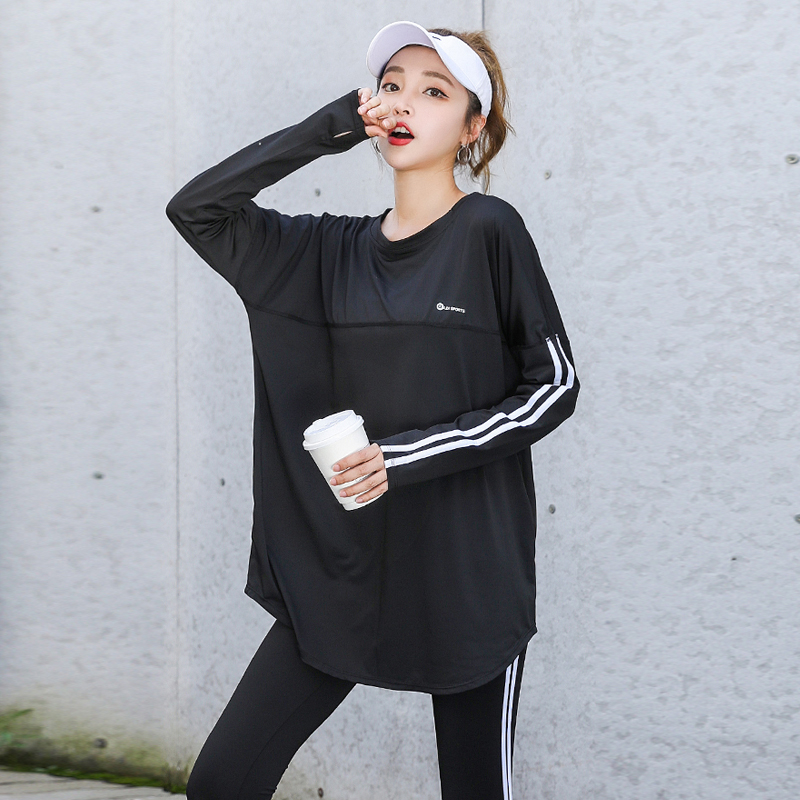 大码瑜伽服女胖mm宽松200斤中长款过臀跑步排汗长袖健身服秋冬季