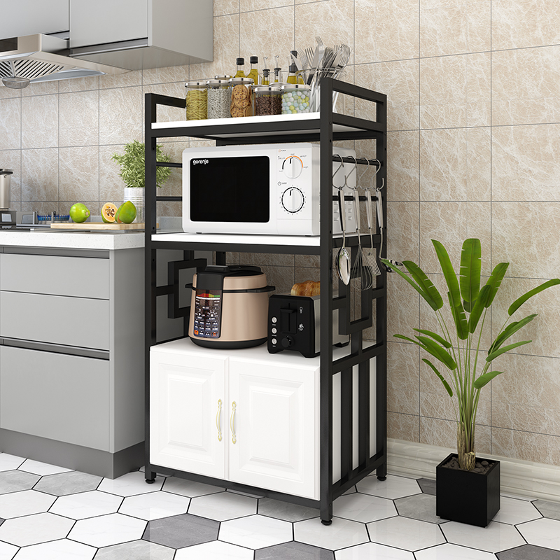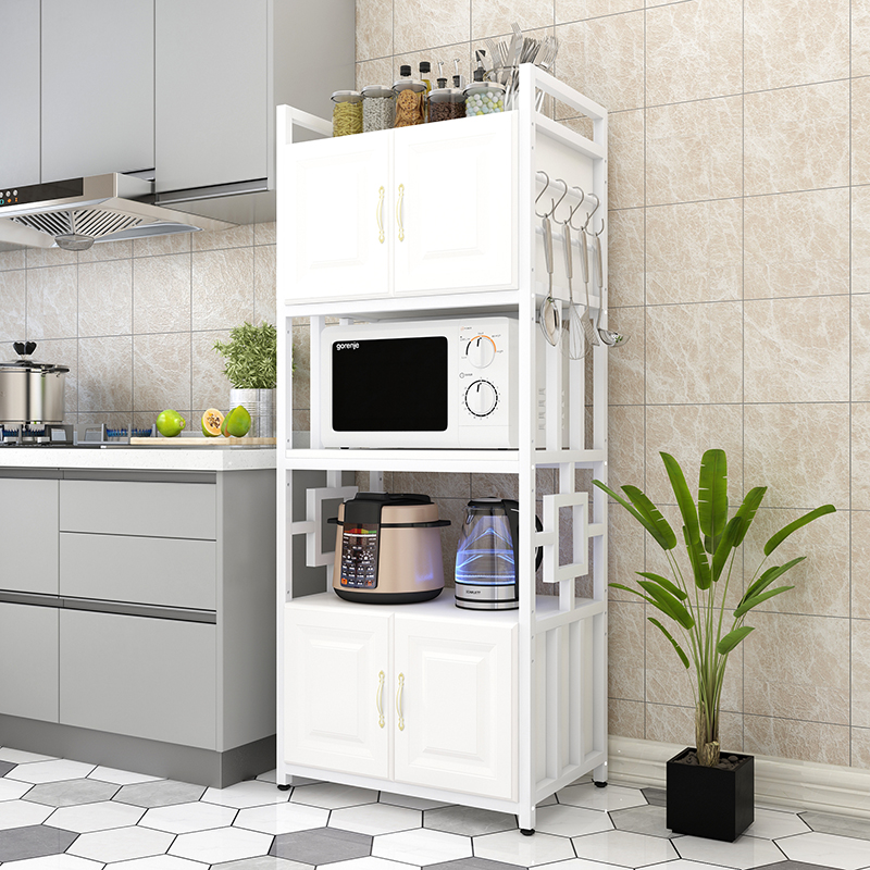 欧式厨房置物架落地微波炉架家用收纳储物柜带P柜门多层调料烤箱