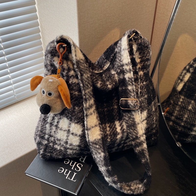 冬季毛呢大容量斜挎包单肩腋下包