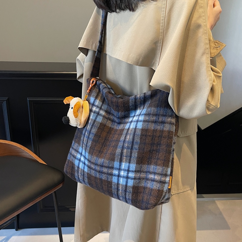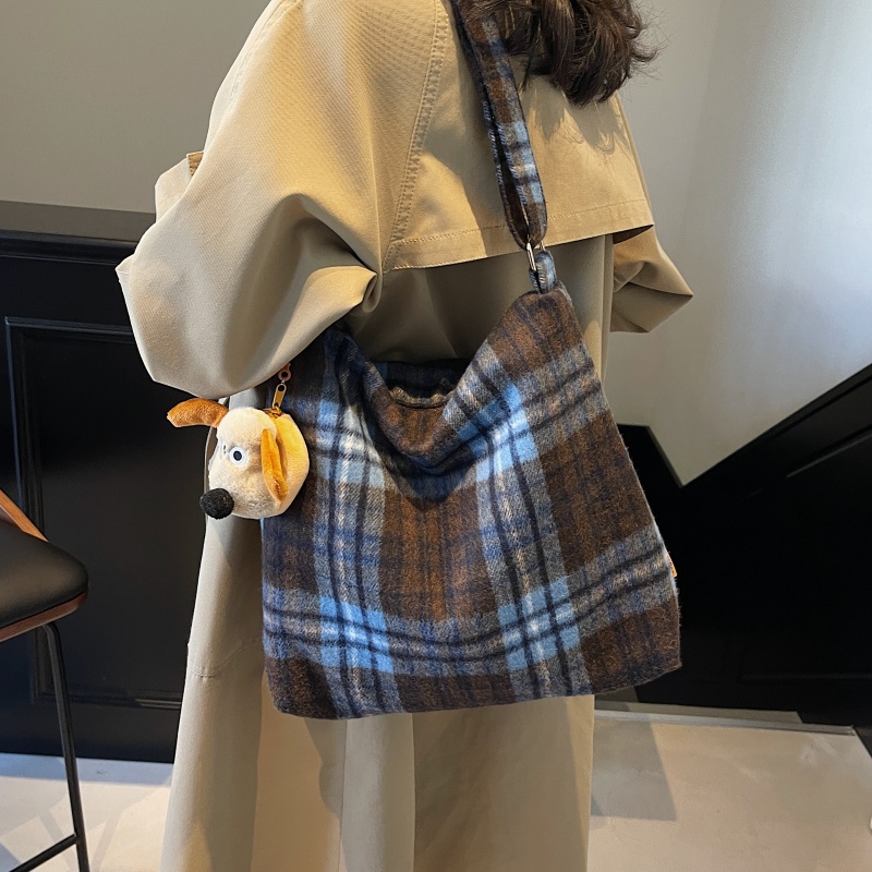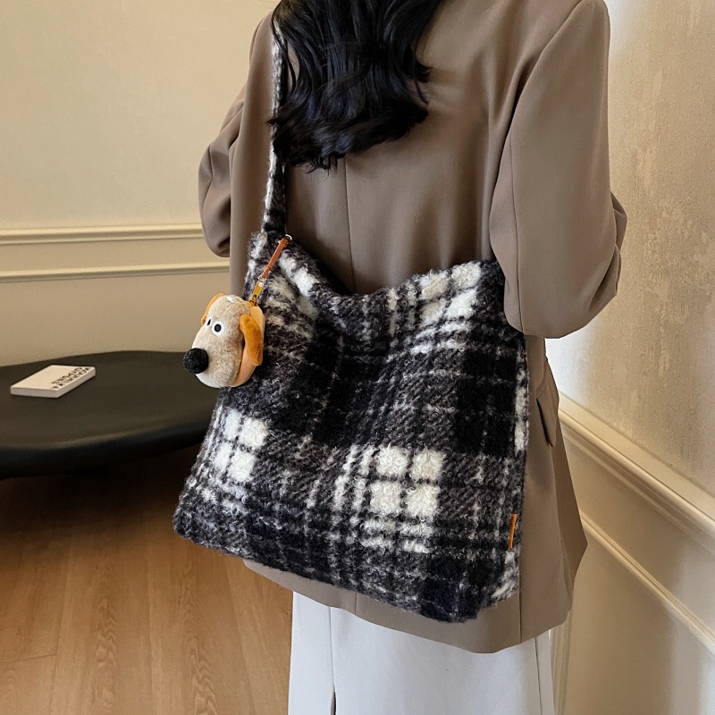 春季呢子大容量包包女2025新款通勤单肩腋下包韩系格子斜挎托特包
