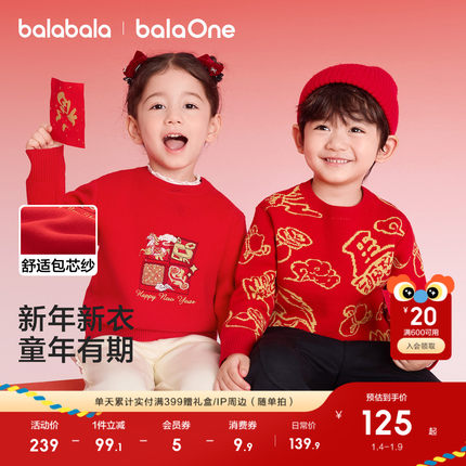巴拉巴拉童装儿童毛衣男女童2026新款秋冬装提花针织衫红色拜年服