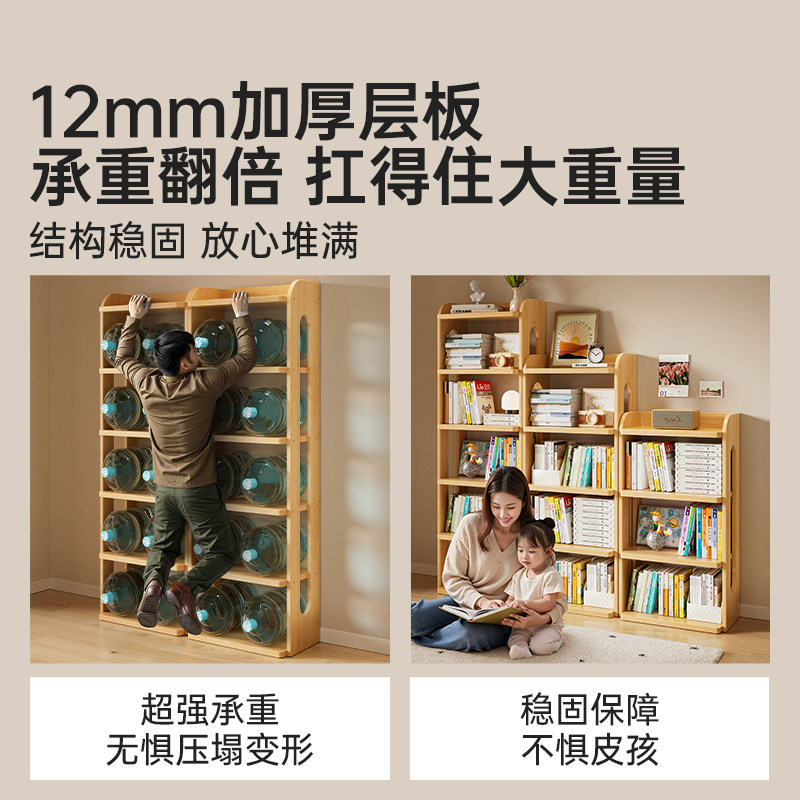 实木书柜展示柜家用客厅墙边小窄儿童绘本架储物柜书架落地置物架