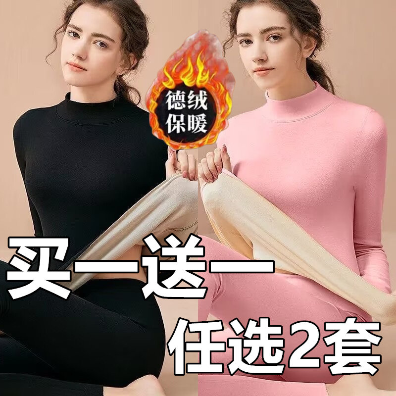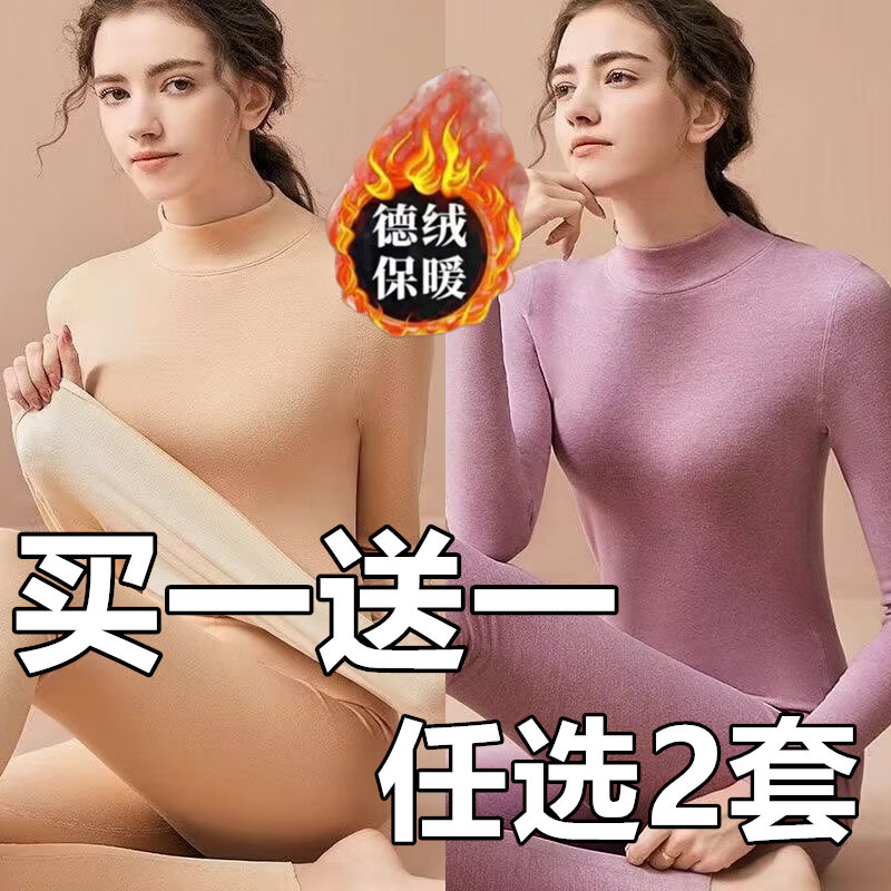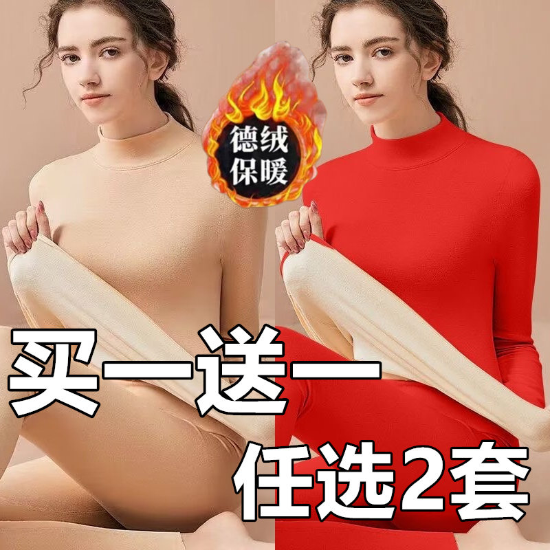 中高领保暖内衣女加厚加绒一体羊羔绒高档中老年秋衣秋裤打底套装