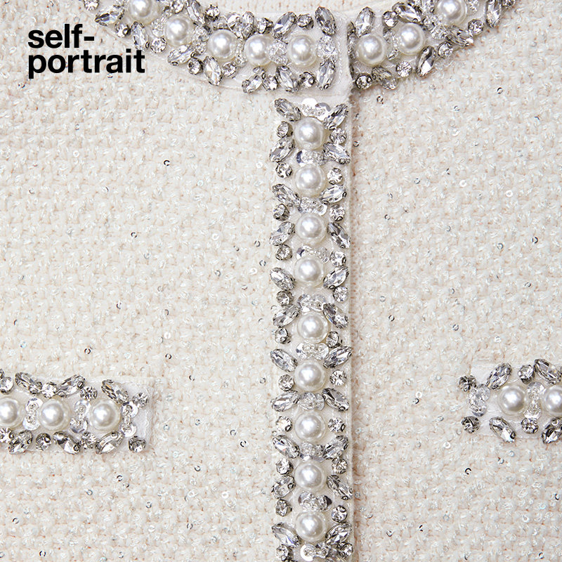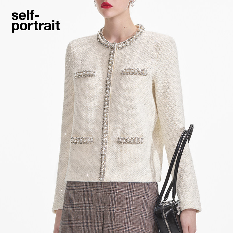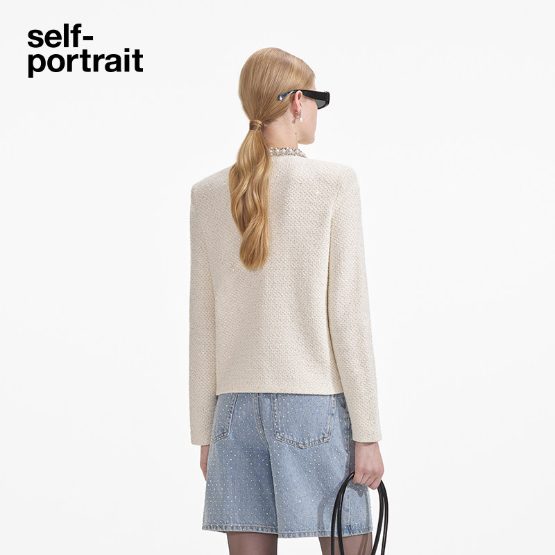 self-portrait 2025早春象牙白小香风圆领亮片针织外套开衫