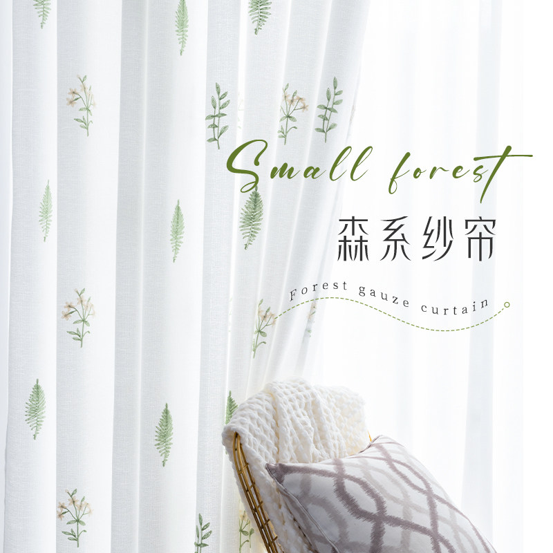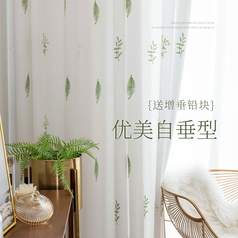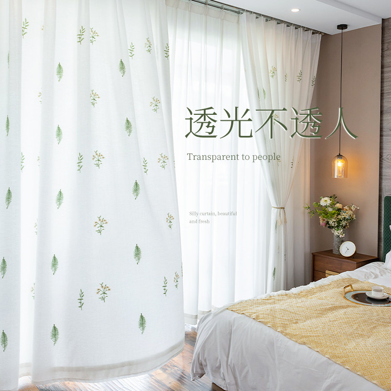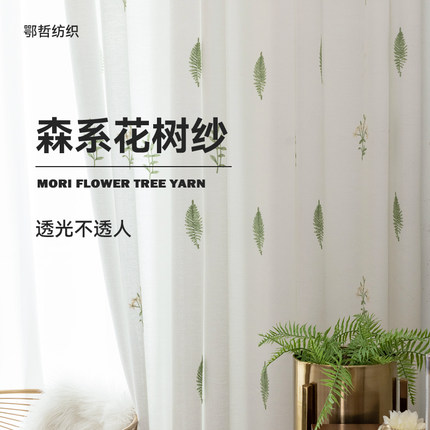 纱帘透光不透人绿色小清新白纱客厅窗帘美式阳台乱麻花树飘窗纱沙