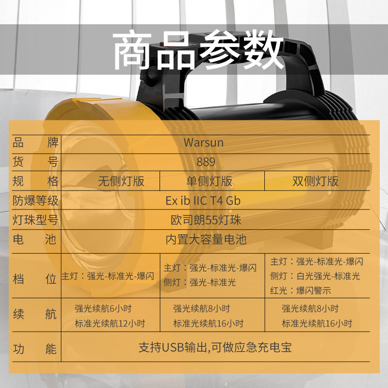 WS-889防爆手电筒带防爆证强光充电工业级手提式探照灯户外消防用