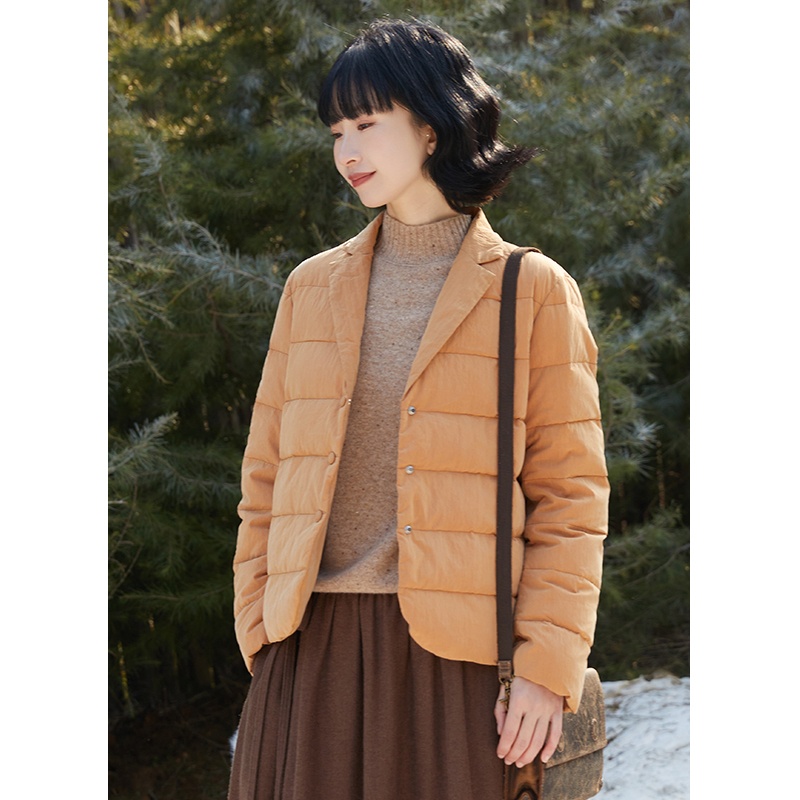 忘城Y591座/走进童话/冬季轻薄款保暖90白鸭绒羽绒服西装领短外套