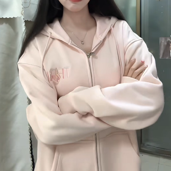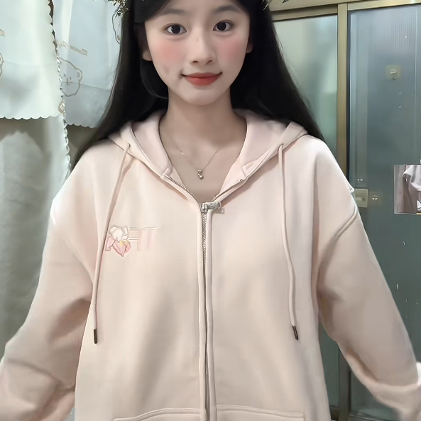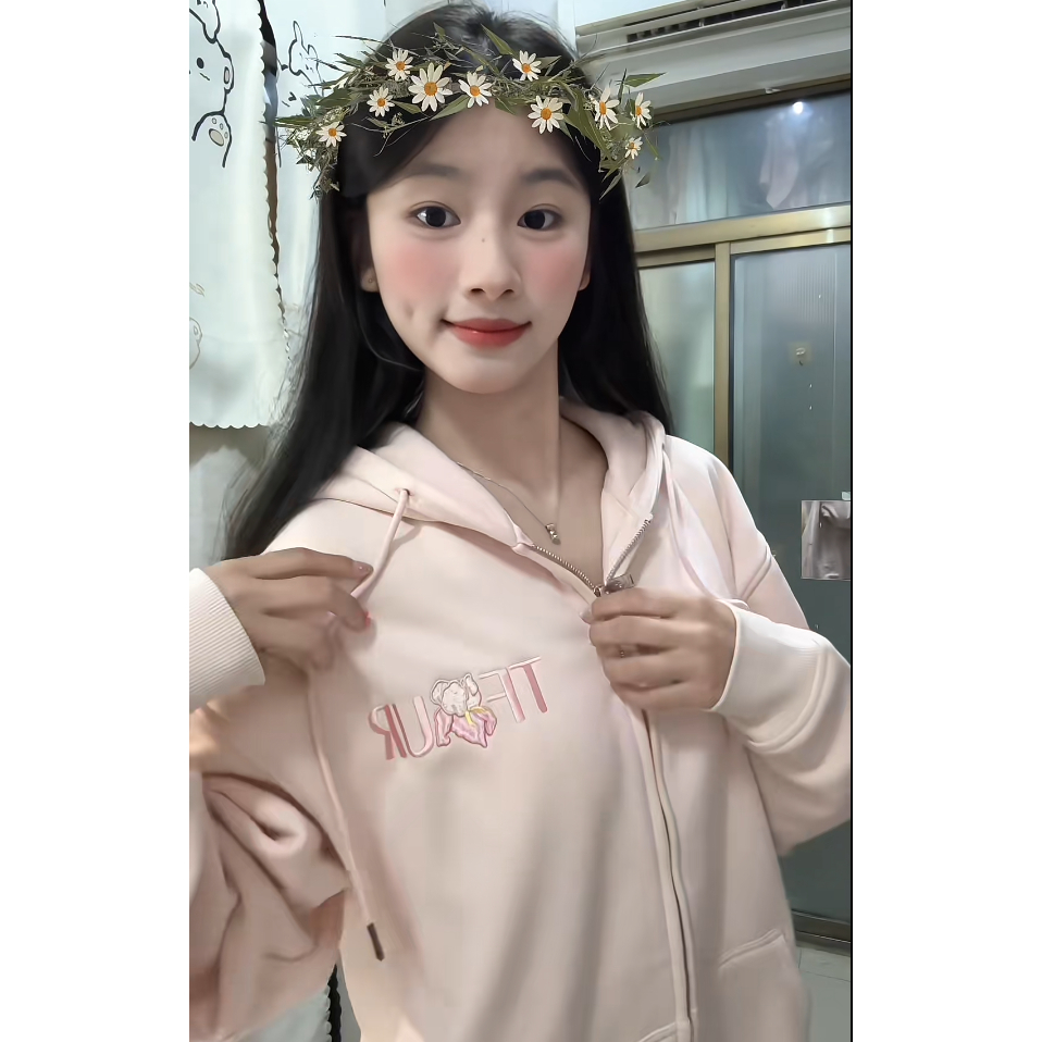 TFOUR 美式重磅彩色花卉刺绣卫衣女同款秋冬季潮牌宽松情侣外套潮