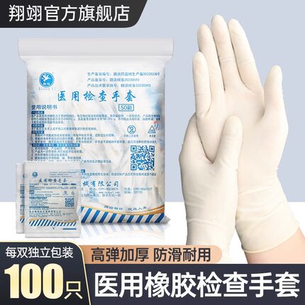 翔翊医用手套一次性橡胶加厚医疗专用乳胶检查手套独立装有粉整箱