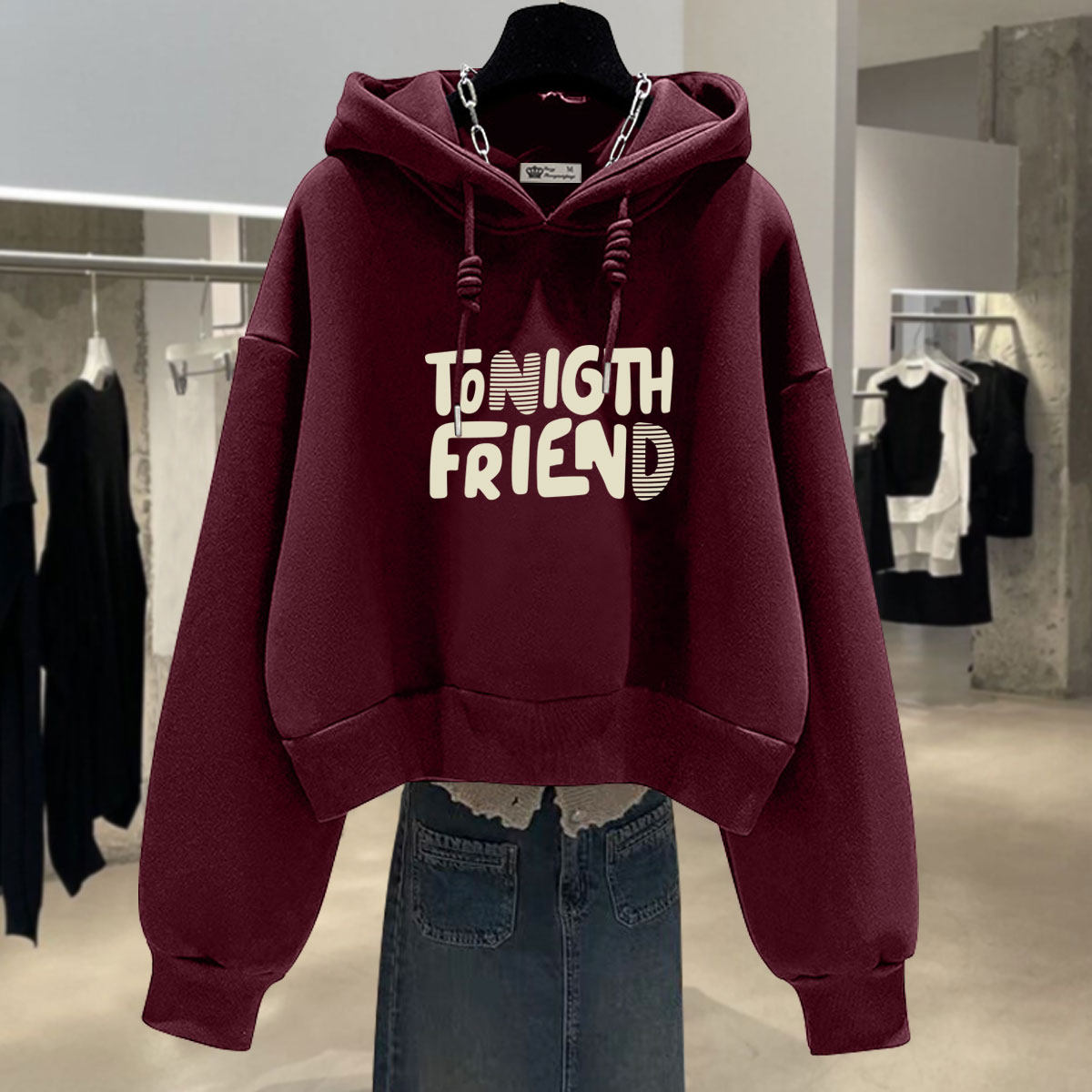 2025春秋冬季新款趣味字母加绒加厚宽松套头长袖外套连帽卫衣女潮