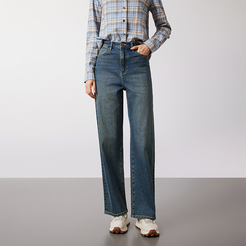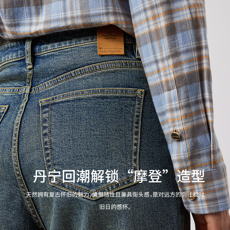 Navigare复古丹宁风直筒牛仔长裤