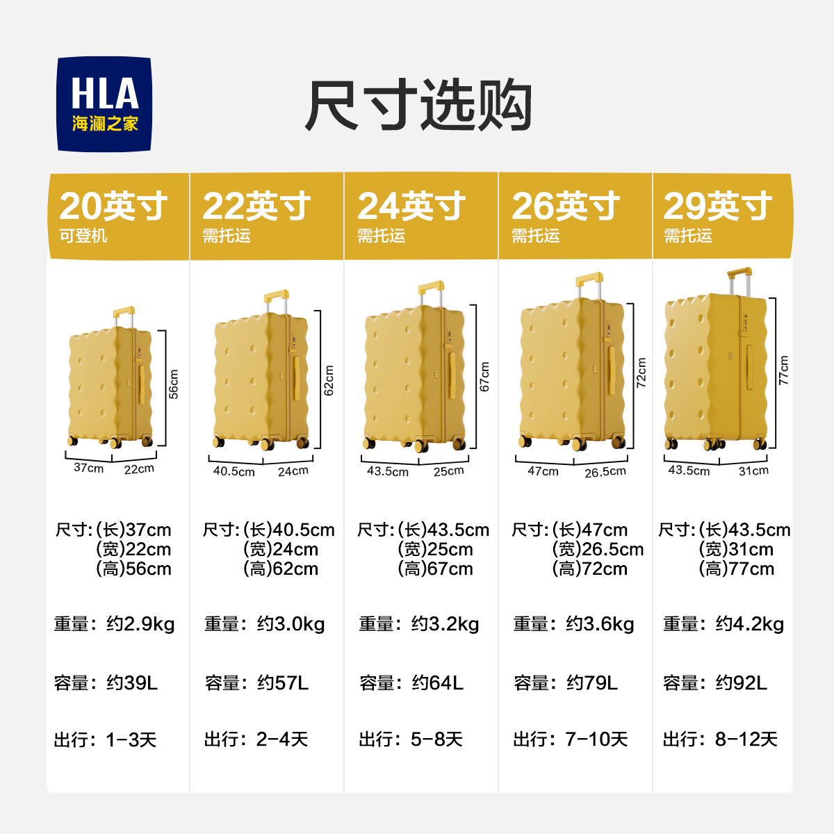 HLA/海澜之家饼干行李箱20寸多功能女2025新款拉杆箱登机箱旅行箱