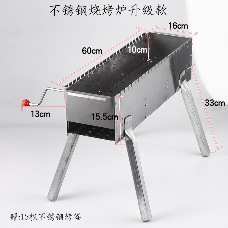 户外烧烤架旋转手动野外木炭烤菜肉烧烤用具便携不锈钢烧烤炉家用