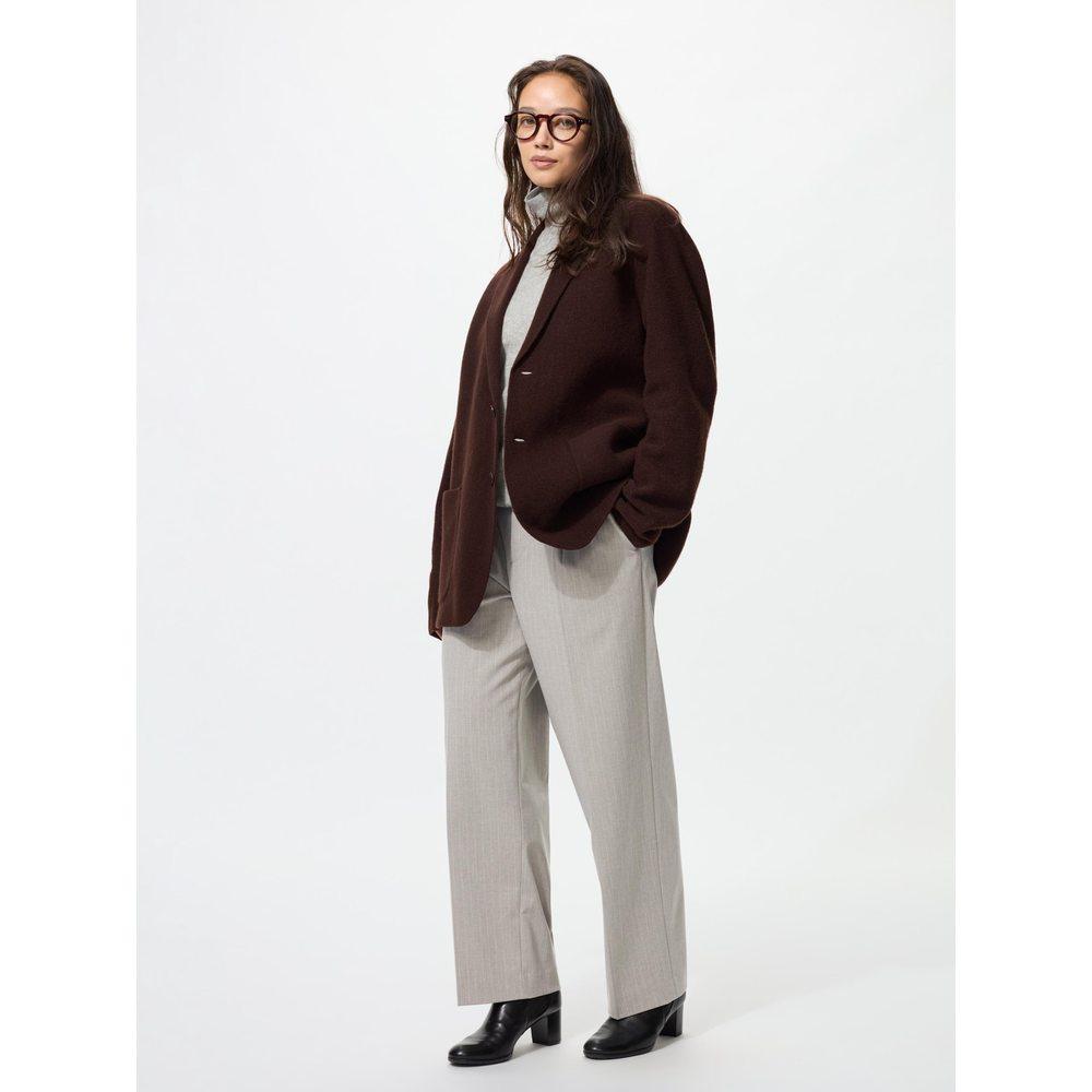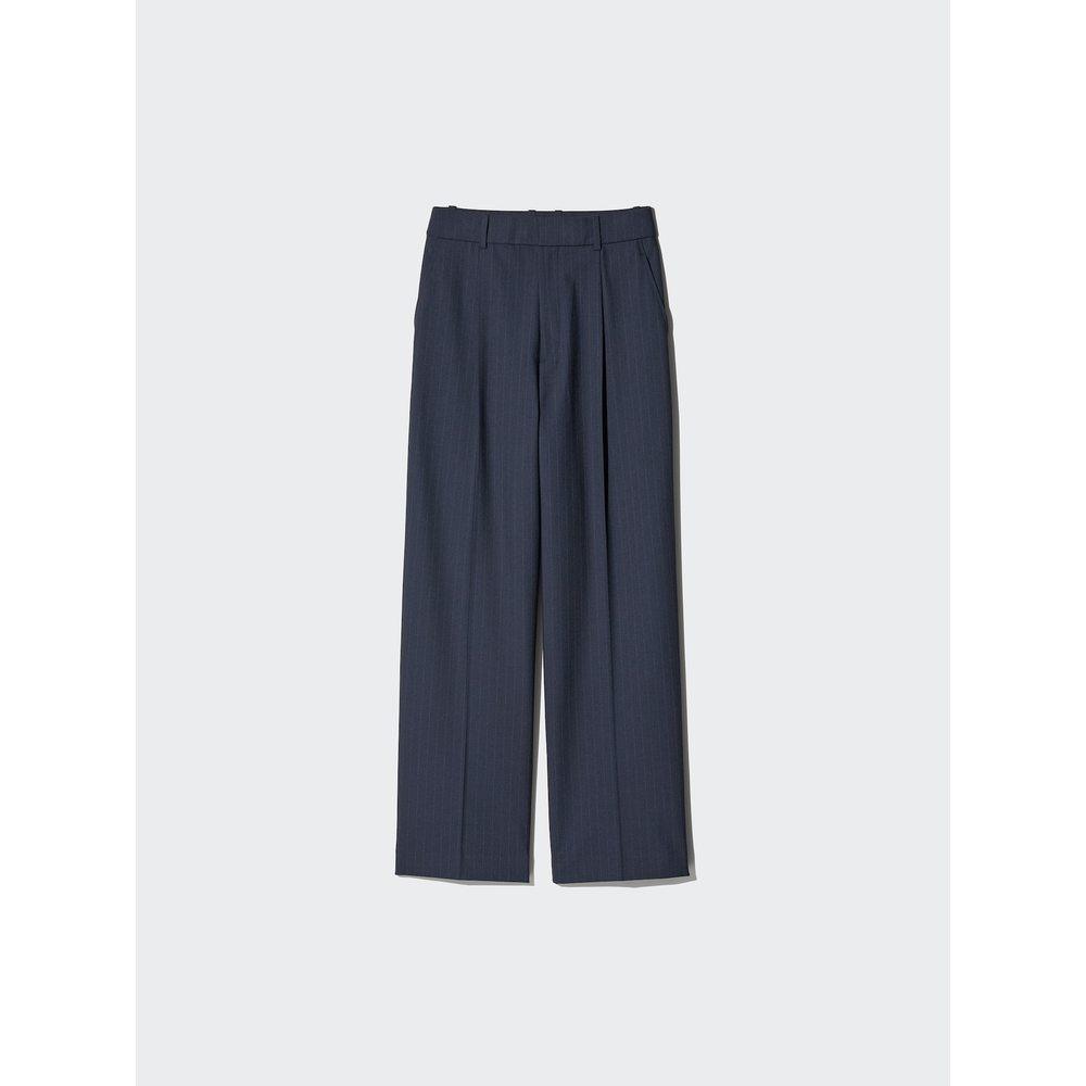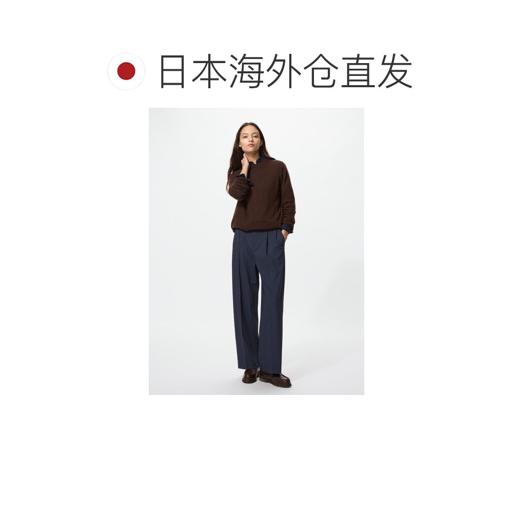 日潮跑腿UNIQLO优衣库 条纹阔腿裤 483778西装裤