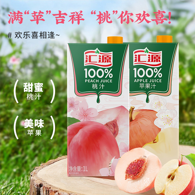 汇源100%果汁苹果汁桃汁阳光柠檬梨汁聚会年货饮料饮品
