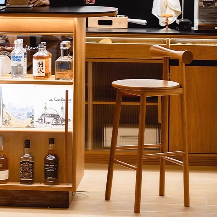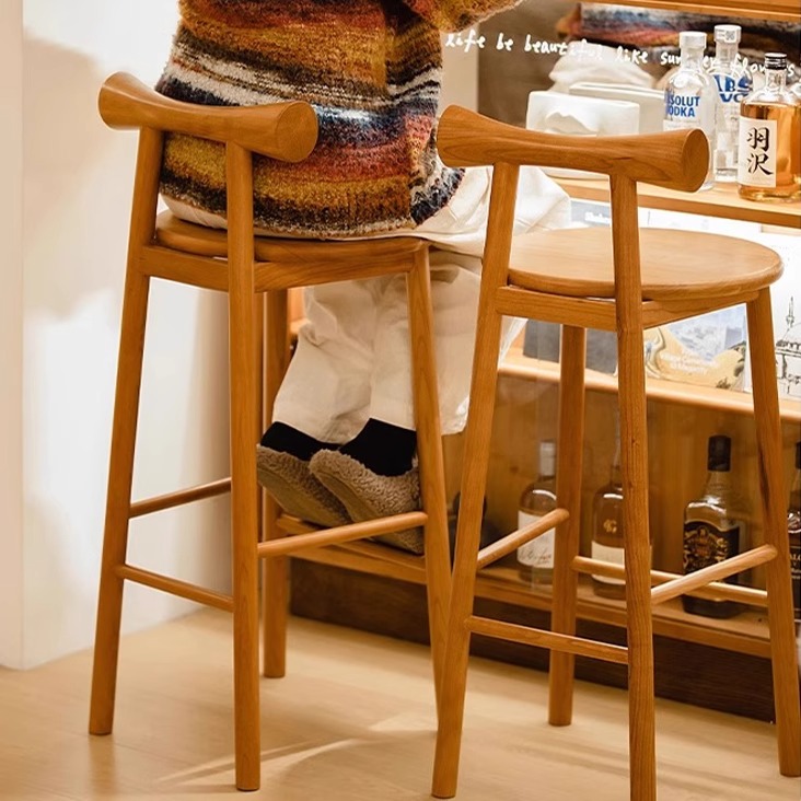北欧日式实木吧台椅餐椅家用中岛台靠背酒吧收银前台蝴蝶高脚凳子