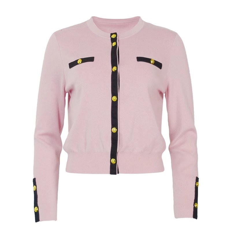 女装2025早春新款宽松简约时尚精致撞色针织开衫MP14JK617
