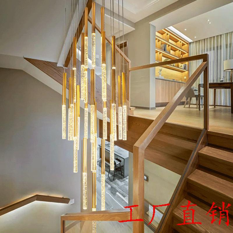 楼梯灯长吊灯复式楼客厅大吊灯现代简约别墅阁楼旋转楼梯水晶吊灯