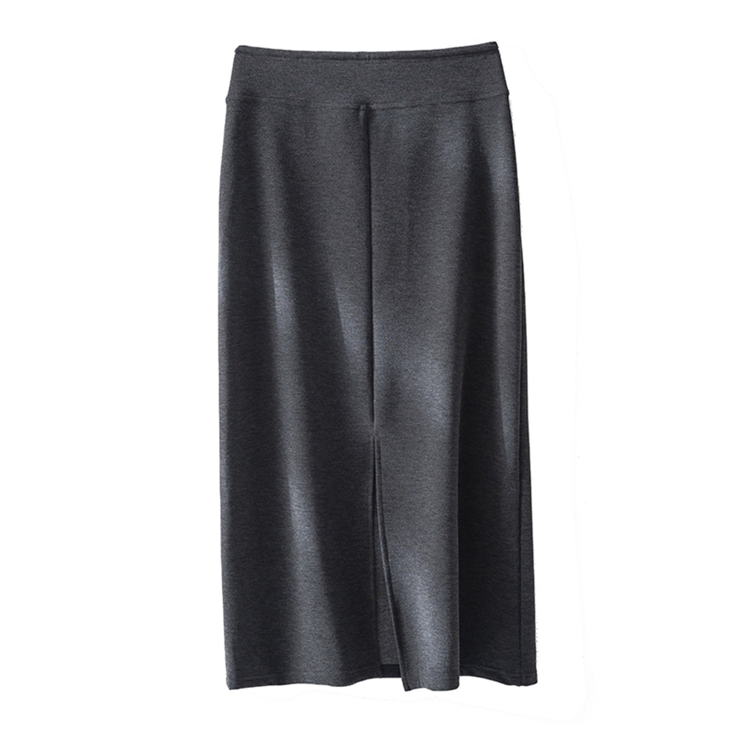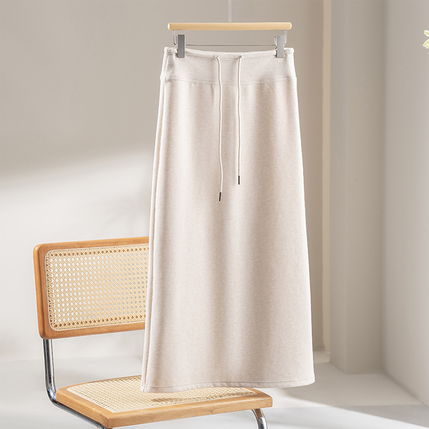 气质开挂!通勤后开叉半身裙抽绳含加绒羊毛混纺裙秋冬直筒裙