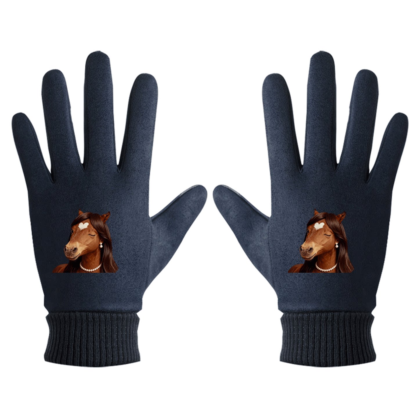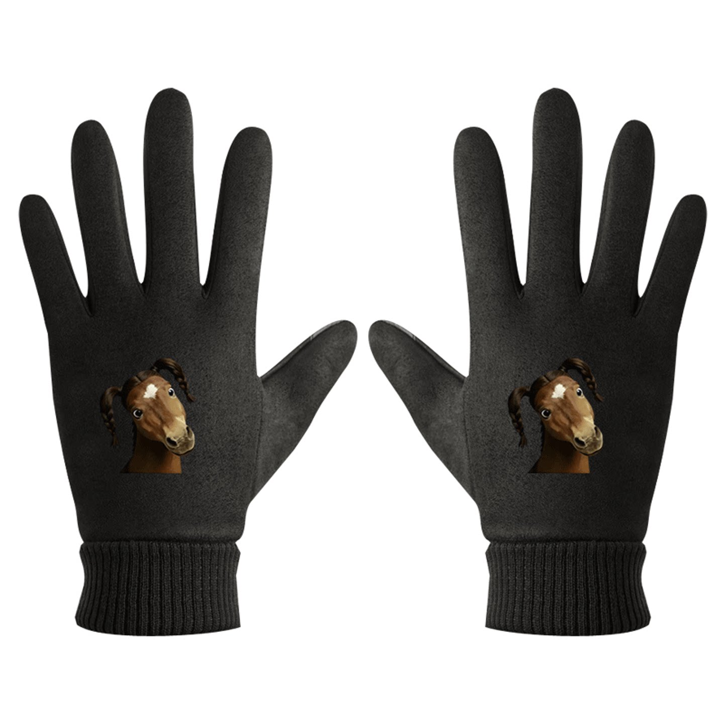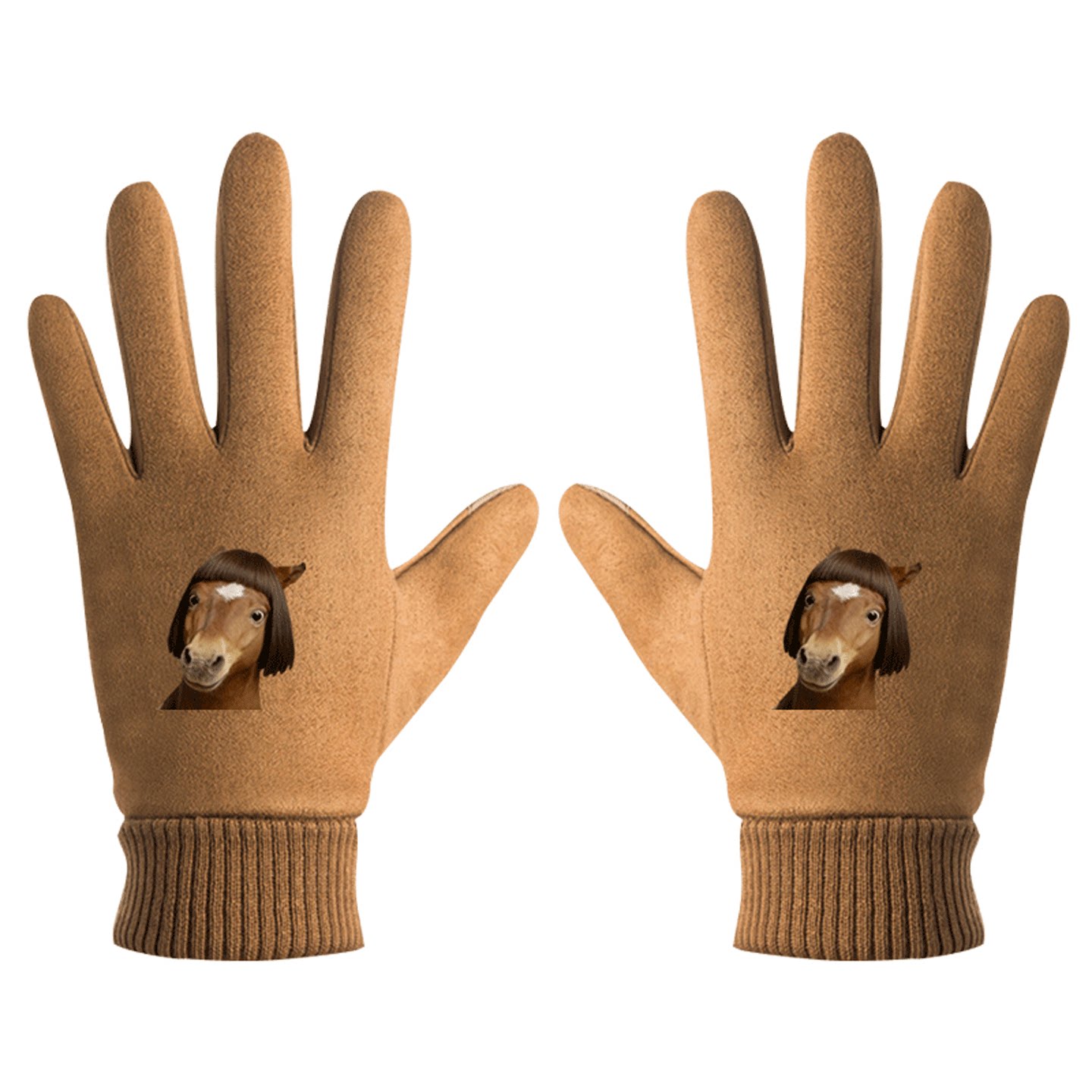 抽象马头像恶搞趣味可定制保暖骑行分指手套卡通可爱图案男女情侣