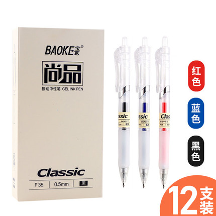 宝克按动中性笔0.5mm黑色笔芯学生用子弹头考试水笔简约墨蓝医护处方笔0.7mm红笔教师批改按压办公签字碳素笔