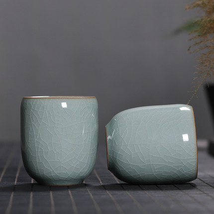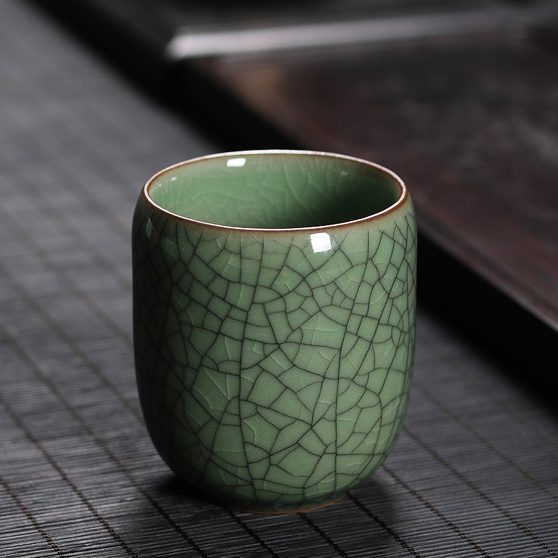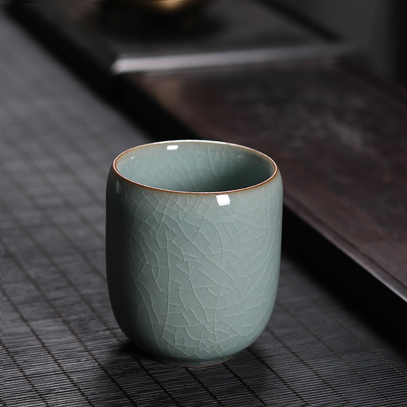 青瓷茶杯水杯哥窑冰裂龙泉陶瓷泡茶单杯直口品茗杯办公室客厅家用