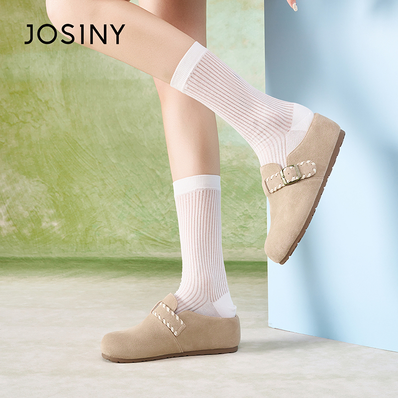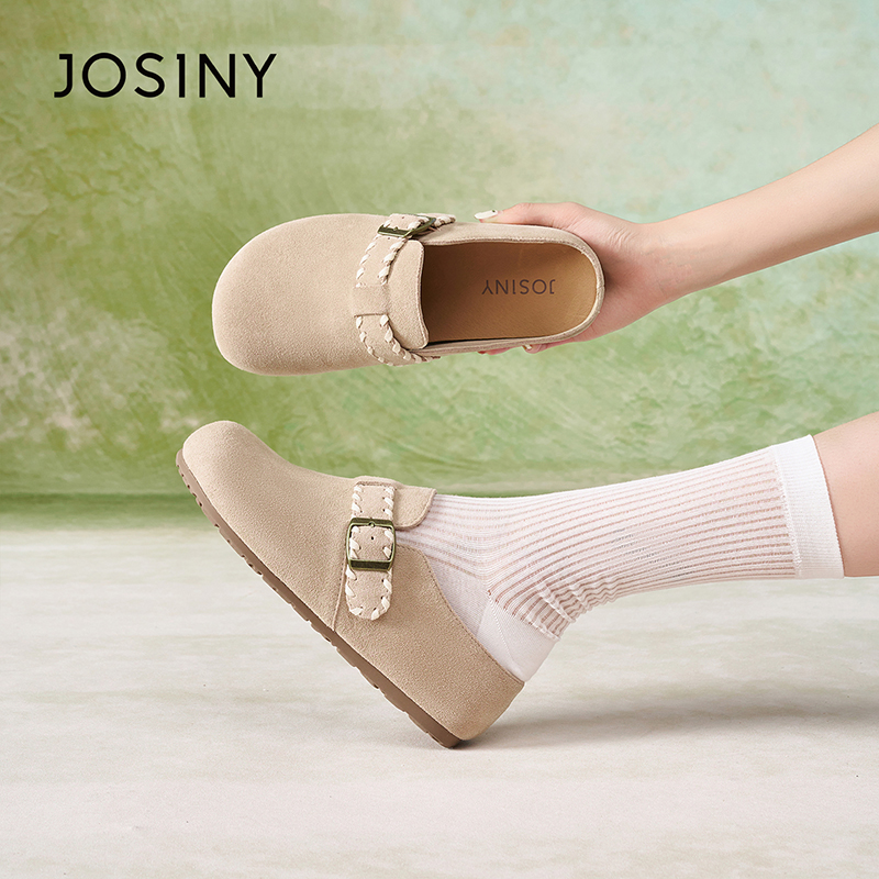 卓诗尼2025秋新款女复古勃肯半拖鞋圆头厚底一脚蹬懒人鞋软底软面